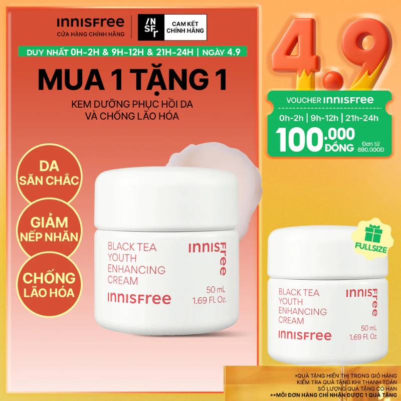 Kem dưỡng da ban đêm ngăn ngừa lão hóa từ trà đen innisfree Black Tea Enhancing Cream 50ml