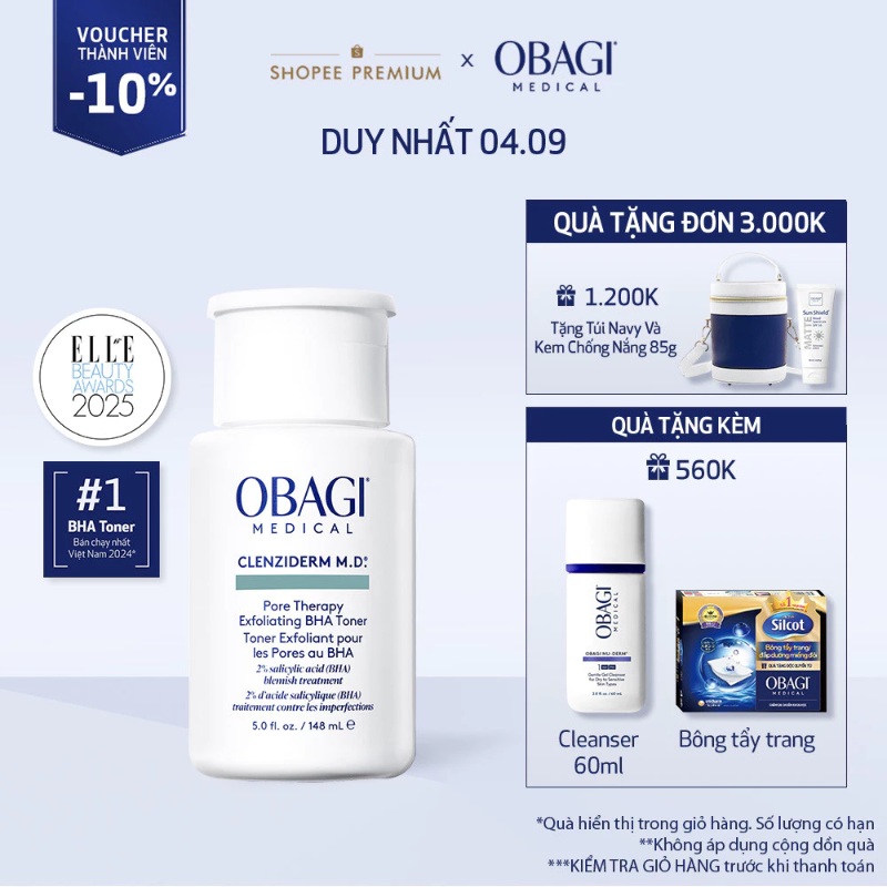 Obagi nổi tiếng với các sản phẩm dược mỹ phẩm chuyên nghiệp, hỗ trợ điều trị mụn, nám và lão hóa. Tại Shopee sale 9.9, Obagi mang đến nhiều ưu đãi lớn, từ giảm giá trực tiếp đến voucher Xtra, giúp bạn dễ dàng tiếp cận các sản phẩm chăm sóc da chuyên sâu mà không lo về chi phí. Đây là dịp lý tưởng để nâng cấp bộ chăm sóc da của bạn.