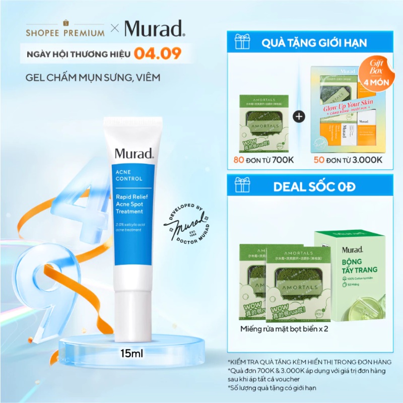 Murad nổi tiếng với các sản phẩm chăm sóc da chuyên sâu, giúp điều trị mụn, lão hóa và tăng cường sức khỏe làn da. Trong Shopee sale 9.9, Murad mang đến hàng loạt deal giảm sâu, voucher và freeship 0Đ, giúp bạn sở hữu các sản phẩm chăm sóc da chất lượng mà vẫn tiết kiệm tối đa. Đây là cơ hội tuyệt vời để thử các dòng serum, kem dưỡng và mặt nạ cao cấp của thương hiệu này.