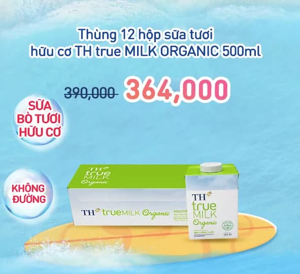 TOP 1. Thùng 12 hộp sữa tươi hữu cơ TH True Milk Organic 500ml (500ml x 12)