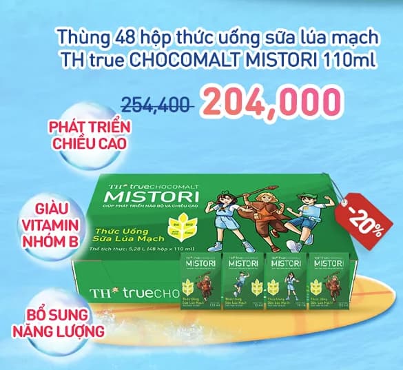 TOP 2. Thùng 48 hộp thức uống sữa lúa mạch TH True Chocomalt Mistori 110ml (110ml x 48)