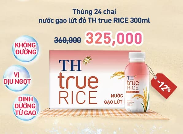 TOP 3. Thùng 24 chai nước gạo lứt đỏ TH True Rice 300ml (300ml x 24)