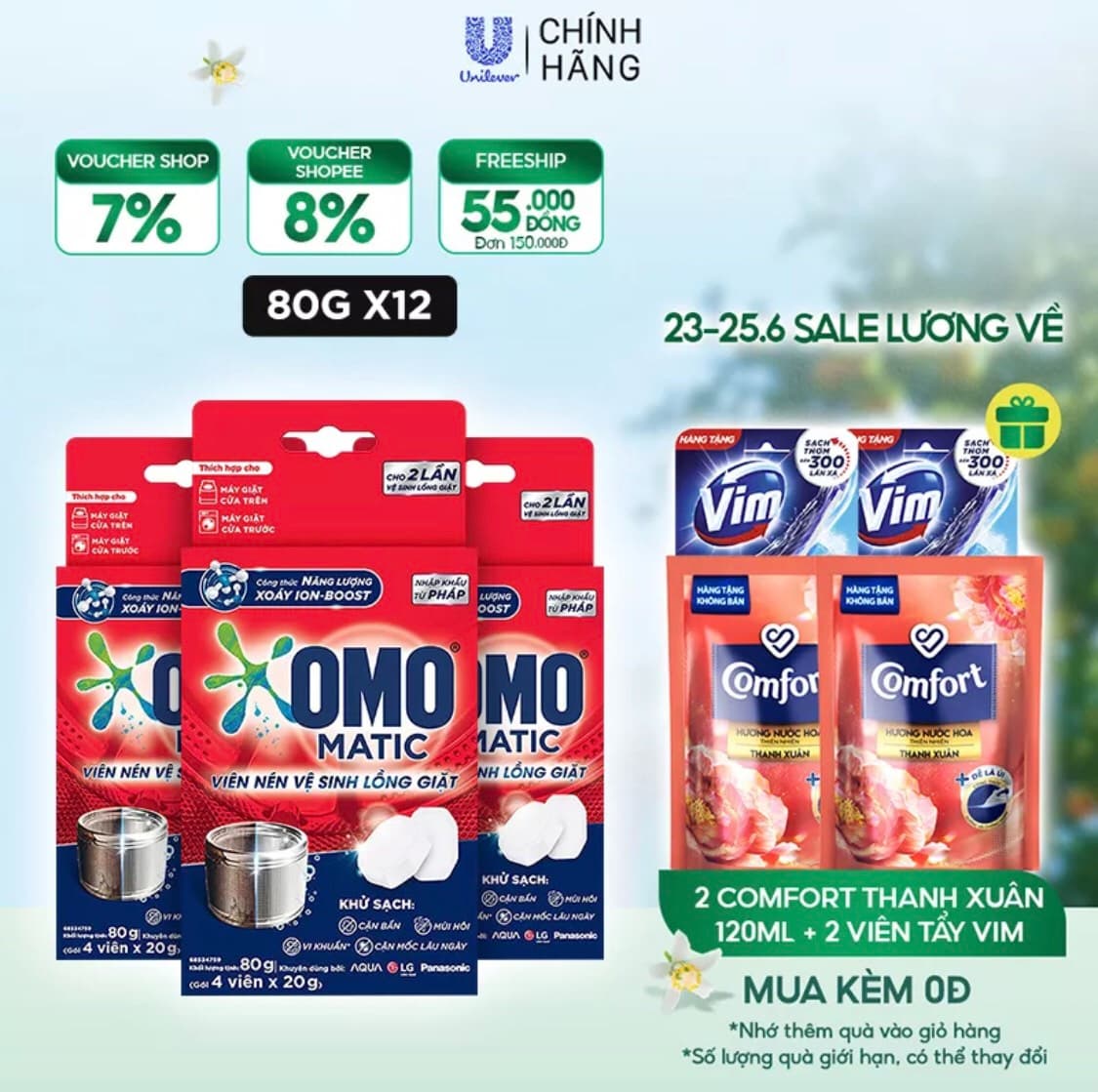TOP 2. Combo 12 Viên Nén Vệ Sinh Lồng Giặt OMO Matic (20gr/viên)