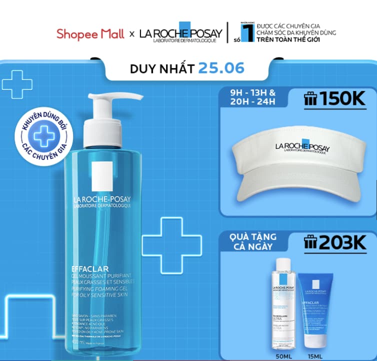 - Giá sale: 539.000 VND, tặng Nước làm sạch sâu và tẩy trang cho da nhạy cảm Micellar Water Ultra Sensitive, Gel Rửa Mặt Tạo Bọt Làm Sạch Dành Cho Da Dầu Nhạy Cảm La Roche Posay Effaclar và thêm quà tặng vào khung giờ đặc biệt.