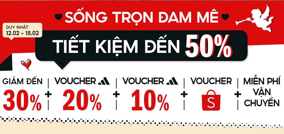 Thương hiệu thời trang Adidas mang đến ngày hội sale giữa tháng 15.2 trên Shopee với những ưu đãi độc quyền như: