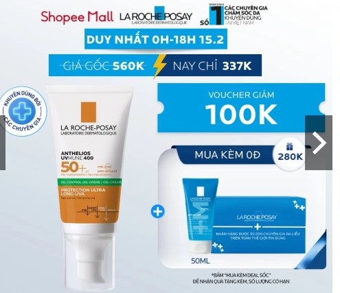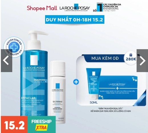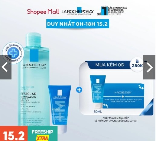 Chào đón tiệc sale giữa tháng 15.2 trên sàn Shopee, hãng mỹ phẩm La Roche Posay tung ra các ưu đãi hấp dẫn gồm:
