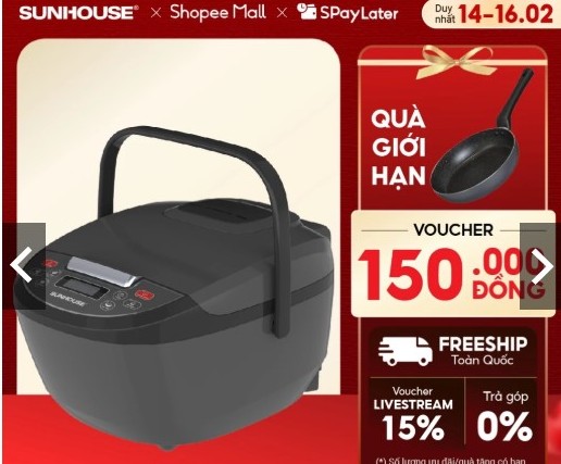 Top 3 deal cực hời của hãng Sunhouse tại siêu hội Shopee sale giữa tháng 15.2:
