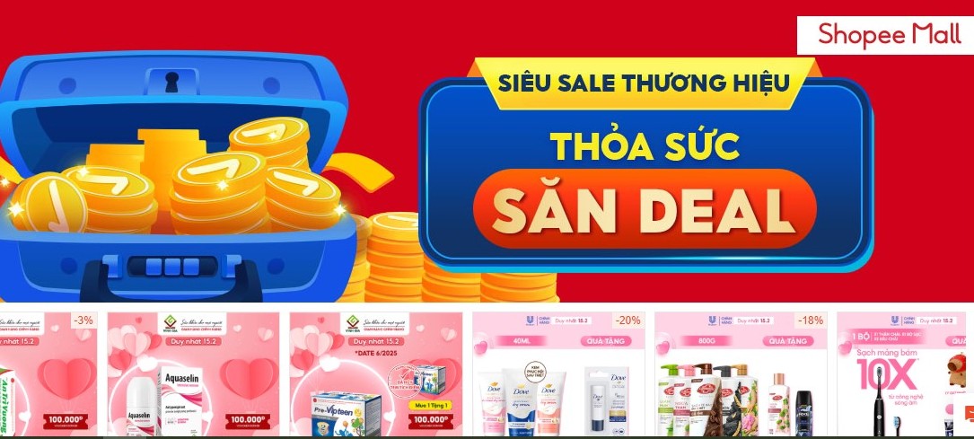 Shopee sale giữa tháng 15.2 áp dụng cho các ngành hàng hiện đang có mặt trên Shopee Mall. Cùng săn các Hot deals hàng chính hãng, chất lượng cao trong Shopee Mall như các sản phẩm thiết bị điện tử, điện gia dụng hiện đại đến từ các thương hiệu lớn như Sony, Samsung, Xiaomi, LG, Tefal, Philips... Các sản phẩm mỹ phẩm làm đẹp, trang điểm từ các thương hiệu nổi tiếng thế giới như Vichy, L'Oreal, Maybelline, Paula’s Choice…