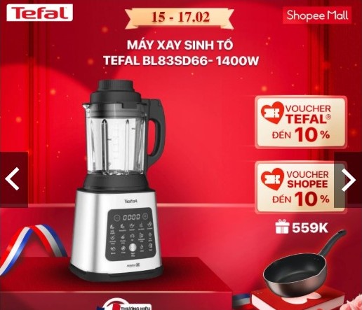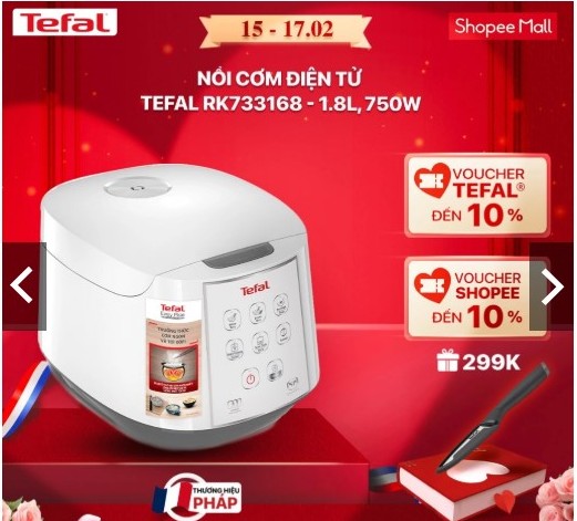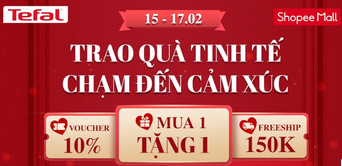 Chào đón sự kiện sale giữa tháng 15.2 trên Shopee, thương hiệu Tefal của Pháp mang đến người mua những ưu đãi sau: