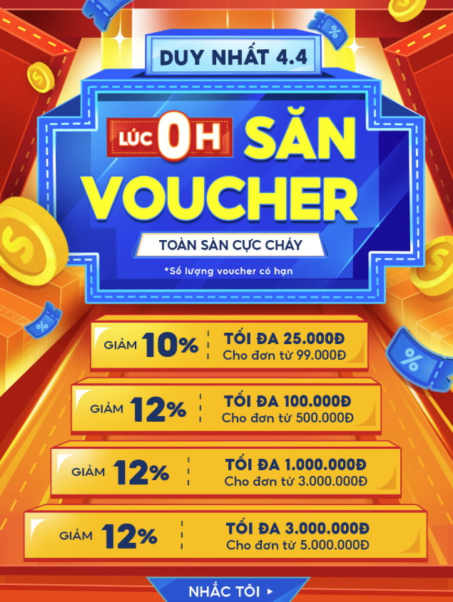 - Săn voucher giảm đến 4 triệu đồng: Săn voucher giảm đến 4 triệu đồng để thả ga mua sắm ngày Shopee sale 4.4.