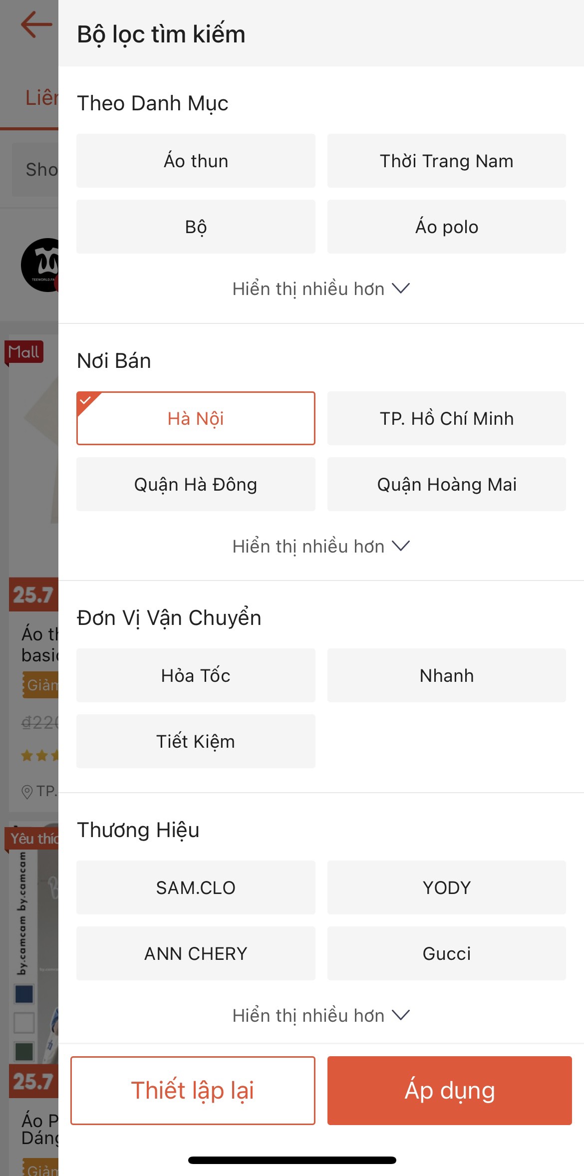 Lọc sản phẩm theo địa chỉ bạn sinh sống