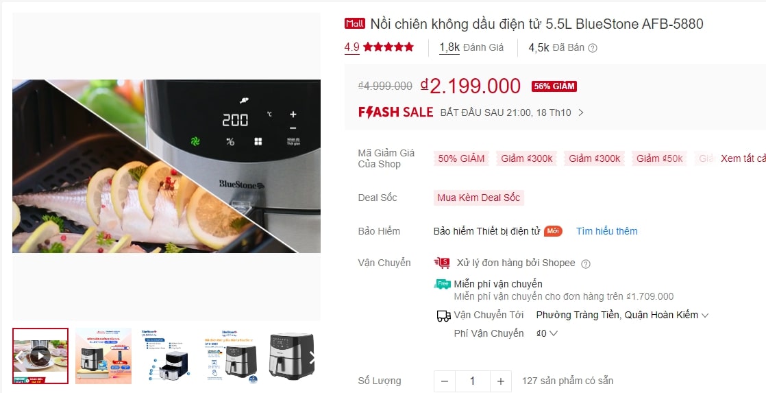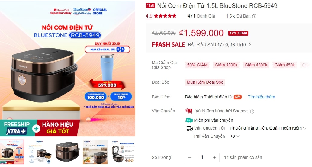 3. Top 5 sản phẩm giảm giá cực sốc tại Bluestone trên Shopee duy nhất ngày 18/10