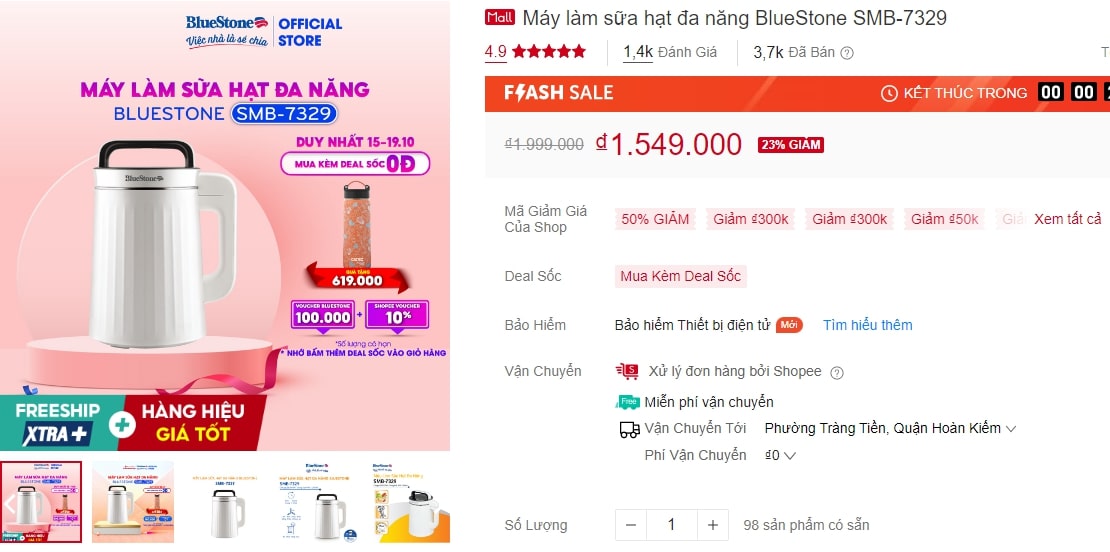 Chi tiết chương trình Sale Super Brand Day BlueStone và top 5 deal Sale giá sốc trên Shopee đã được chúng tôi giới thiệu ở trên. Hi vọng, với những chia sẻ này, các bạn sẽ săn được những món đồ xịn với mức giá hời chưa từng có. Đặc biệt, hãy thường xuyên ghé thăm Shopeeanlytics.com để săn các mã giảm giá, các mã Sale Hot và những sản phẩm mới hiện nay.