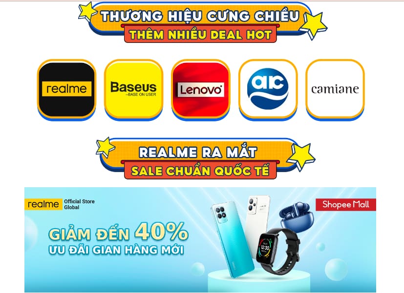 Thương hiệu nổi bậc Realme , Baseus, Lenovo, AEKYUNG, Camiane