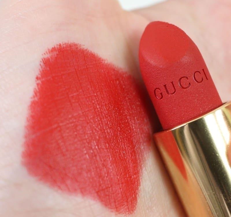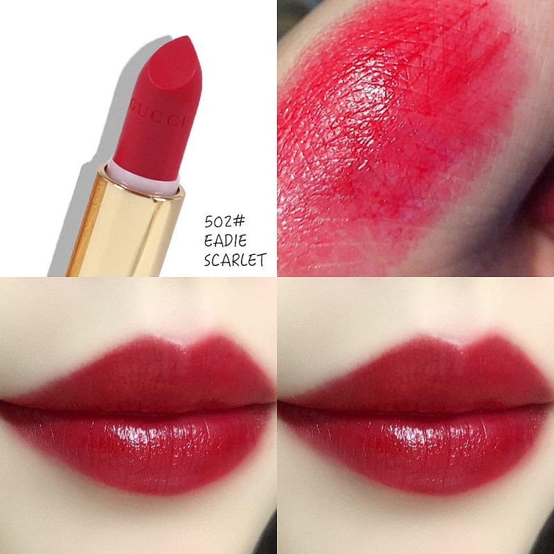 8. Gucci Rouge à Lèvres Mat 502 Eadie Scarlet – Đỏ Lạnh