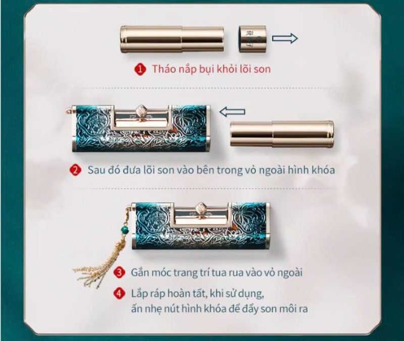 Không chỉ đẹp ở lớp vỏ, phần thân son còn được khắc hoa văn tỉ mỉ, mỗi chi tiết nhỏ đều gợi nhớ đến các câu chuyện tình yêu truyền thống và mỹ học Á Đông. Điều này biến son môi Khóa Đồng Tâm Florasisv không chỉ là món mỹ phẩm để làm đẹp mà còn như một tác phẩm nhỏ mang đậm giá trị văn hóa, khiến người dùng cảm thấy thích thú và tự hào khi sở hữu hoặc trao tặng cho người thân yêu.