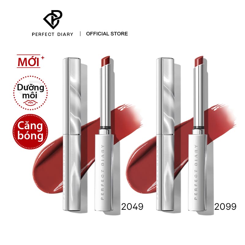 Ngoài son thỏi và son kem truyền thống, thời gian gần đây Perfect Diary còn cho ra mắt thêm dòng son bóng cực kỳ hút mắt. Dòng son bóng về cơ bản có kết cấu dạng son tint, trong thành phần chứa nhiều dầu và sáp hơn son lì. Son bóng nhà Perfect Diary sở hữu bảng màu tương tự như dòng son kem, nhưng độ lì sẽ thấp hơn, màu lên môi đem lại cảm giác căng bóng cho người sử dụng.