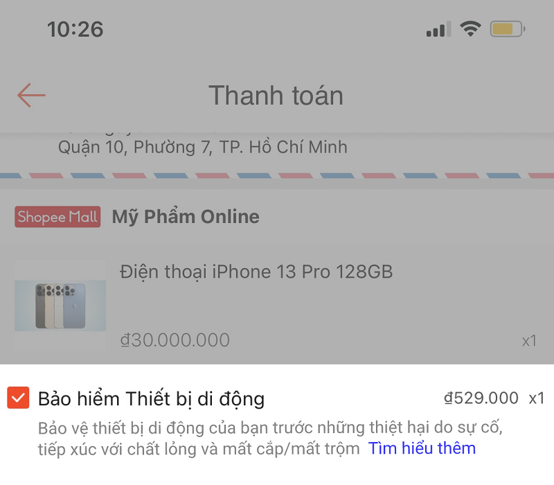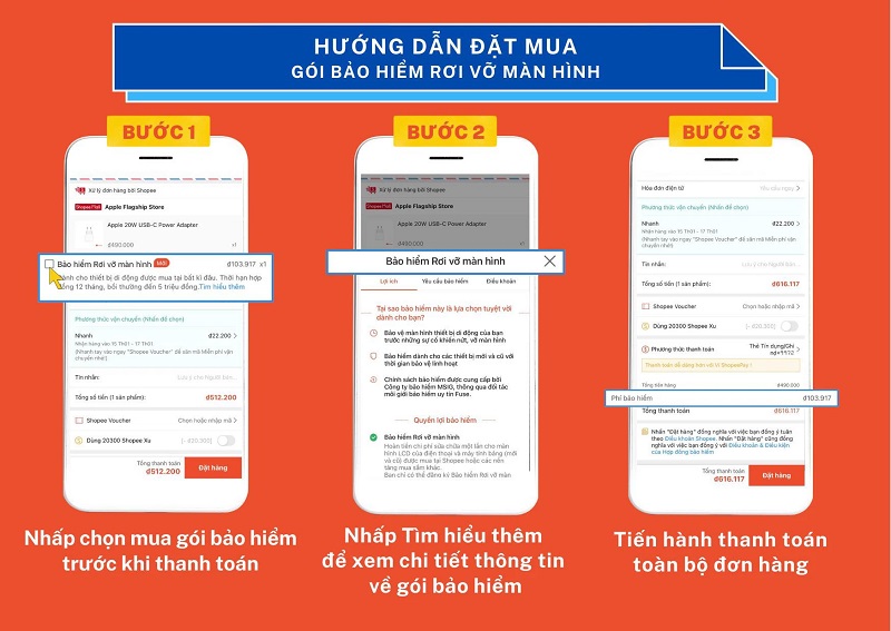 Hướng dẫn mua gói bảo hiểm thiết bị điện tử trên Shopee
