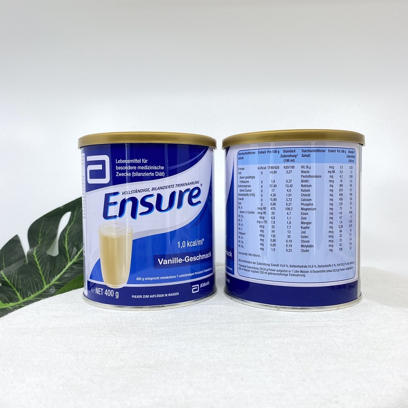 Ensure là dòng sữa của Mỹ thuộc thương hiệu Abbott, với hàm lượng dinh dưỡng cao lên tới 24 loại vitamin E, A, C, sắt, canxi, kẽm,… giúp cung cấp đầy đủ lượng khoáng chất và những vitamin cần thiết cho những người lớn tuổi để thúc đẩy tiêu hoá và nâng cao thể trạng cũng như hỗ trợ điều trị một số bệnh lý như đái tháo đường, cao huyết áp, loãng xương,…