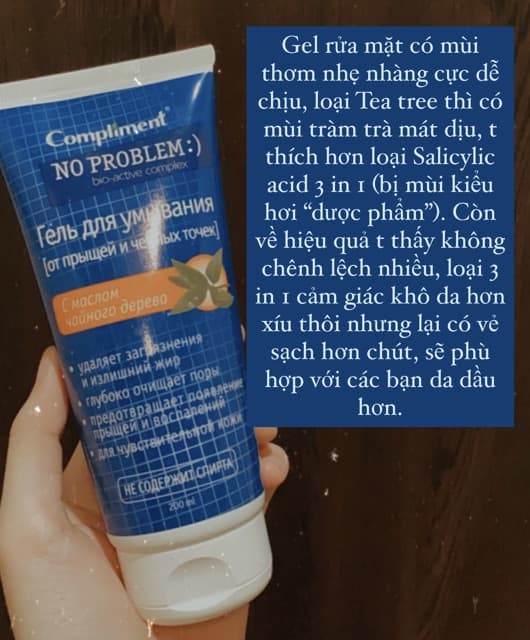 Compliment – thương hiệu sữa rửa mặt của Nga được yêu thích trên thị trường. Tuy cái tên này không được quen thuộc với người dùng như các dòng sản phẩm mỹ phẩm của Hàn Quốc so với thị trường Việt Nam nhưng có lẽ tín đồ của các dòng sản phẩm chăm sóc da mụn đã tin cậy lựa chọn nó như là một phương pháp giúp làn da sạch sẽ, dịu êm khi bị mụn.