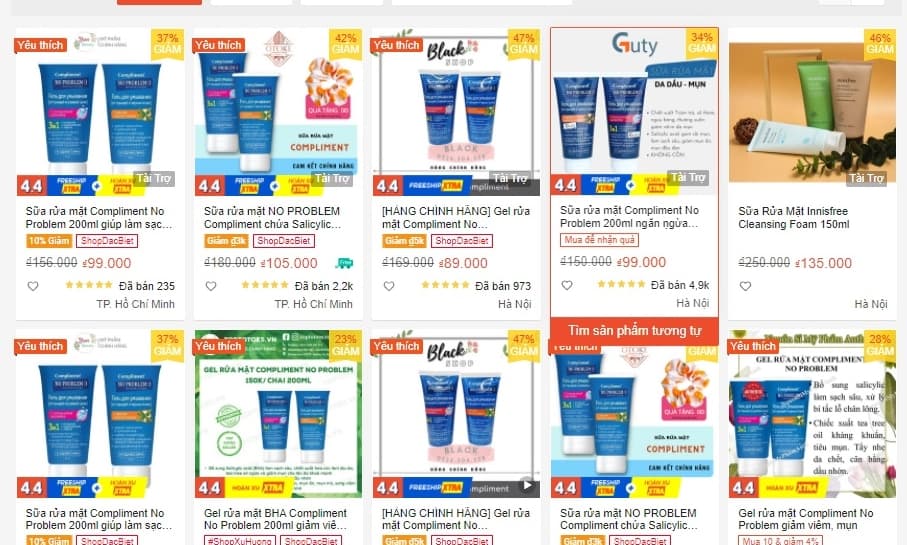 Cách đặt mua sữa rửa mặt Compliment trên Shopee