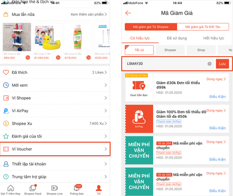 - Bạn hãy bấm lưu các mã giảm giá và áp dụng vào đơn hàng của mình là xong.