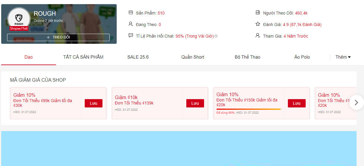 Siêu hội giảm giá Shopee 7.7 đang tới gần với sức nóng tới từ hàng ngàn thương hiệu tham gia. Trong đó, các tín đồ thời trang nam không thể bỏ qua ưu đãi giảm giá khủng tới từ thương hiệu Rough nổi ti...