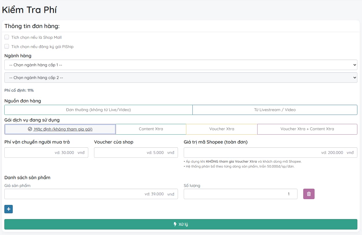 - Trường hợp 2: Shop DÙNG Voucher Xtra