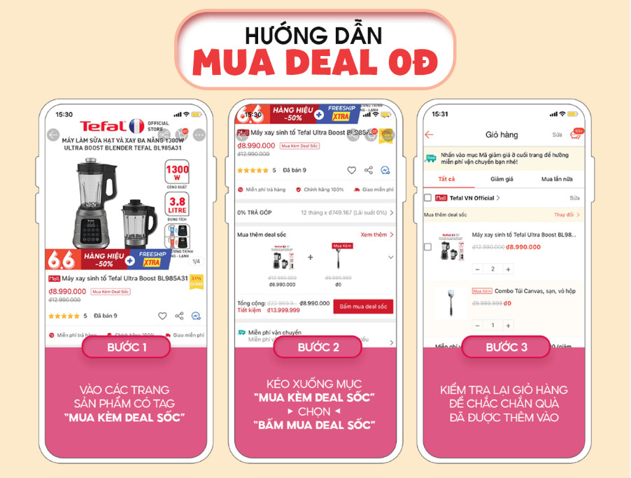 Loạt deal shock 0 đồng sẽ được Tefal tung ra bất ngờ mỗi ngày với số lượng có hạn. Vậy nên hãy theo dõi ngay shop và truy cập thường xuyên để xem deal tặng có gì bạn nhé.