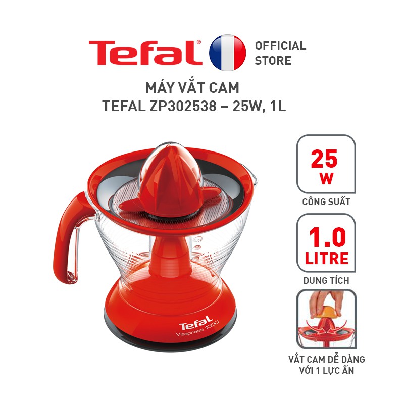 3.3. [Deal 15H ngày 10/10] Máy vắt cam Tefal Vitapress ZP 302538 đỏ, 25W, 1L