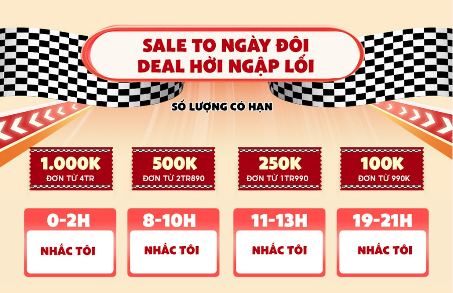 - Từ 0h-2h: Giảm 1 triệu cho đơn từ 4 triệu