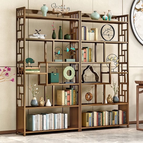 7. Kệ để đồ decor nhiều tầng 1m73 bằng gỗ tre phong cách cổ điển - Tủ để sách báo trưng bày trang trí phòng khách đẹp