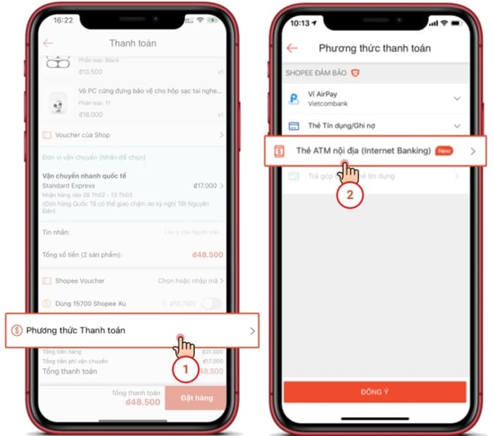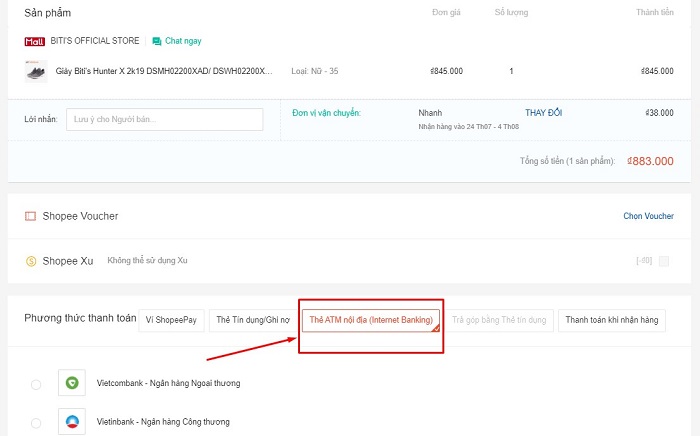 Hình thức thanh toán qua Internet Banking có thể áp dụng được cả trên ứng dụng Shopee App và Web Shopee.