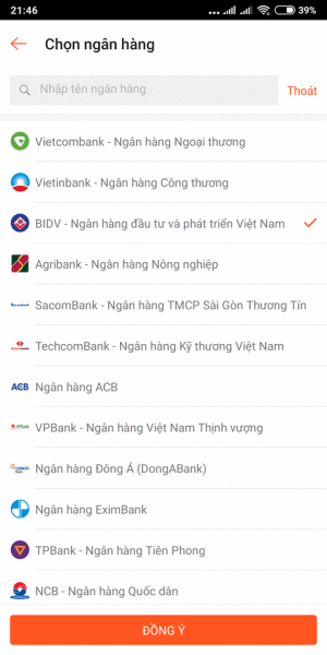 Bước 5: Sau khi đã chọn xong ngân hàng thì bạn bấm “Đồng ý”.