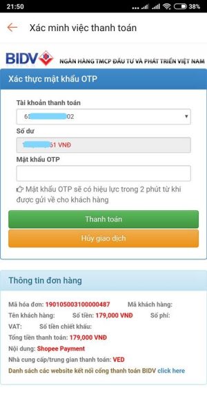- Số tiền trong tài khoản của bạn không đủ để thanh toán đơn hàng. Một số ngân hàng sẽ yêu cầu số dư tối thiểu trong tài khoản. Bạn cần lưu ý điều này để không nhầm lẫn khi thanh toán đơn hàng. Ví dụ một số ngân hàng yêu cầu số dư tối thiểu của ngân hàng là 50,000đ mà bạn có 250,000 thì bạn sẽ không thể thanh toán được đơn hàng có giá trị 250,000đ.
