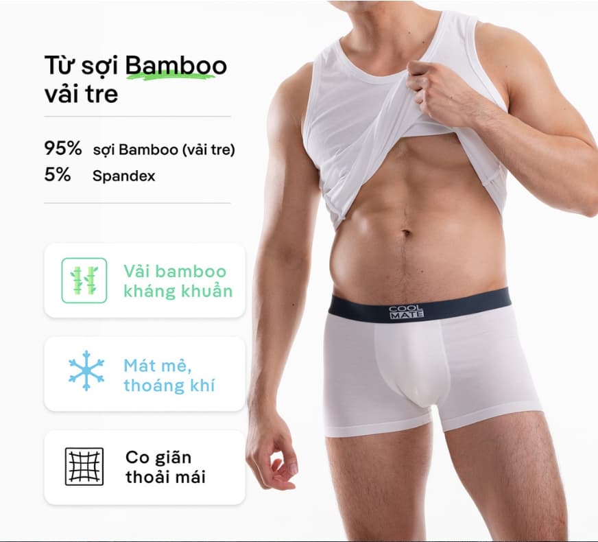 - Combo 3 quần lót nam dáng Trunk Bamboo kháng khuẩn Coolmate