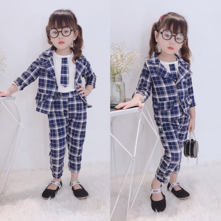 Nếu như các mẹ đều trở nên thanh lịch, sang chảnh và uy tín khi diện lên mình bộ đồ vest thì các bé gái cũng vậy. Áo khoác vest được đánh giá là một trang phục dễ mặc , không quá cầu kỳ, thường đi kèm với quần tây hoặc chân váy xòe xếp ly để tạo thành bộ. Bên trong kết hợp với áo thun trắng basic hoặc chiếc áo voan với một chút kiểu cọ ở cổ thì cực kì ăn nhập với nhau. Bộ đồ vest sẽ giúp nàng công chúa của chúng ta xinh xắn, sang chảnh và tỏa sáng hơn bao giờ hết. Hơn nữa còn không khiến bé bị già quá mà vẫn rất năng động, phong cách và dễ kết hợp với trang phục gia đình. Với trang phục này, cô bé như hóa thân vào vai nàng tiểu thư thứ thiệt đó nha.