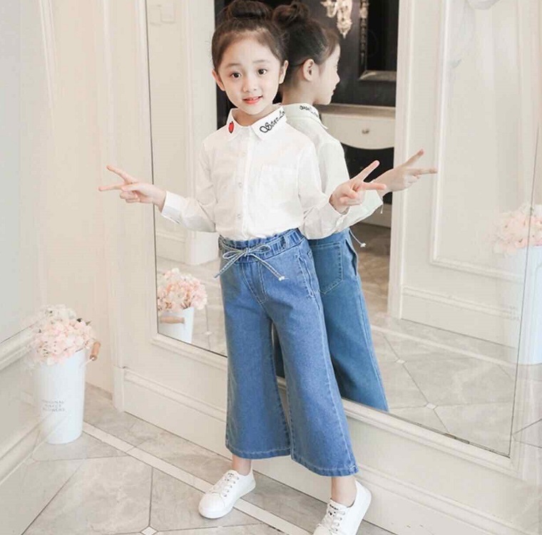 Nhắc đến thời trang đường phố thì không thể bỏ qua một trang phục cực kì quan trọng đó là chiếc quần jean. Đây chắc chắn sẽ là phong cách cực kỳ phù hợp với những cô bé có phần cá tính và năng động. Hơn nữa, điểm cộng lớn nhất của những chiếc quần jean là phối hợp được với rất nhiều loại áo, biến tấu ra rất nhiều kiểu khác nhau. Các loại áo có thể là: áo thun basic, áo croptop, áo sơ mi, áo trễ vai, áo yếm, blazer, áo hoodie,... Quần jean không chỉ có skinny jean mà còn có các loại quần như: quần jean ống loe, quần baggy, quần boot cut jean, quần short jean,... Nếu bạn có thể kết hợp cho bé đôi giày thể thao hoặc chiếc mũ lưỡi trai cá tính thì không còn gì để chê.