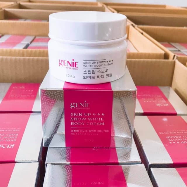 - Kem dưỡng trắng body tinh thể nước Snow White Genie là sản phẩm dưỡng trắng cơ thể tuyệt vời và nổi tiếng của hãng. Với kết cấu chất kem mịn mướt mềm và mát. Sản phẩm giúp làn da tăng tone trắng sáng hơn rất nhiều làn da cũ.