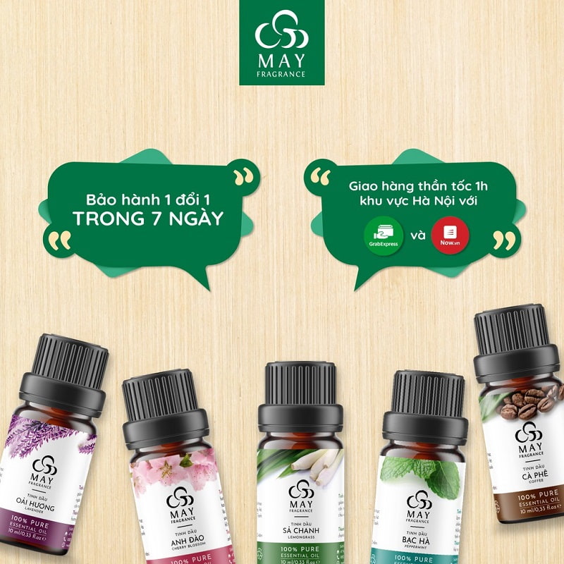 Tinh dầu thiên nhiên nguyên chất May Fragrance là sản phẩm vô cùng uy tín với giá thành vô cùng hợp lý. Tinh dầu được sản xuất hoàn toàn từ tự nhiên nên bạn có thể yên tâm khi sử dụng. Chỉ cần vài giọt tinh dầu bạn đã có thể xua đuổi côn trùng, làm căn phòng bạn thơm ngát, thư giãn và thoải mái hơn khi sử dụng.