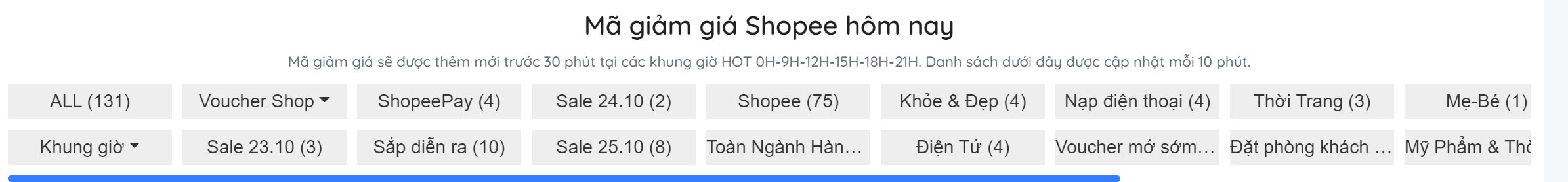 - Voucher giảm 100%, tối đa 25K MBS 75K, khung giờ lưu voucher bắt đầu từ 0H 23.10 (Các khung giờ vàng săn voucher 0H, 1H, 7H, 9H, 12H, 15H, 18H)