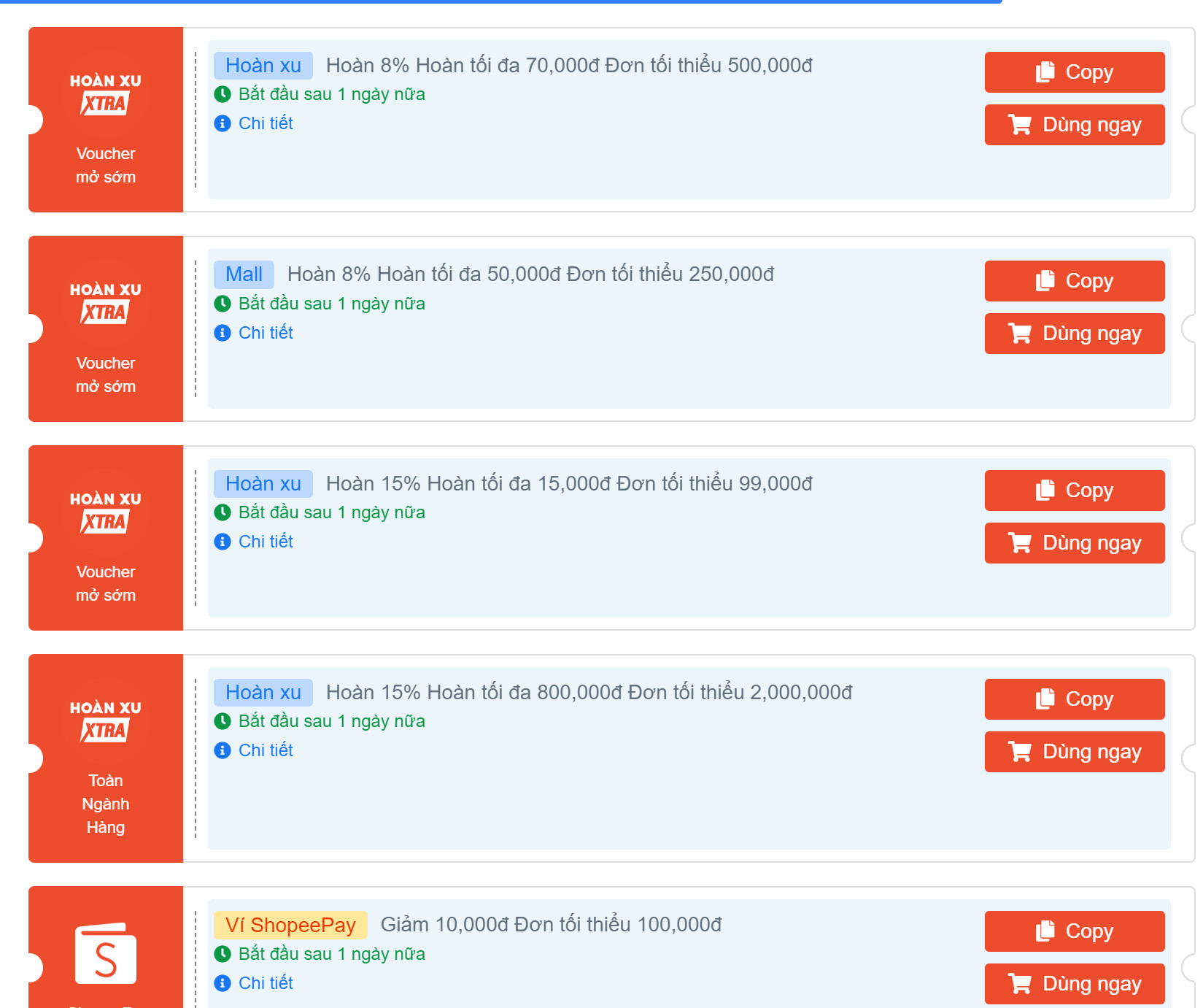 Bước 3: Chọn mã giảm giá phù hợp nhấn Copy để sao chép sau đó quy trở lại trang chủ Shopee, áp mã vào đơn hàng muốn mua là xong.