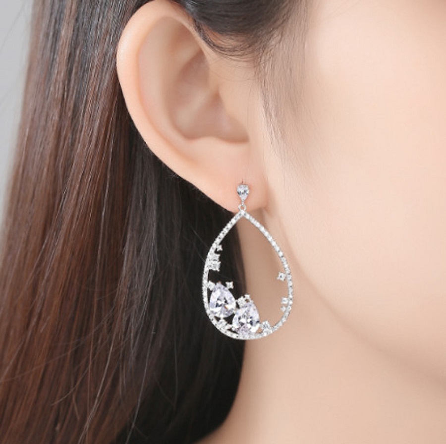 Đây là kiểu dáng thiết kế khá độc đáo với hình ảnh vô cùng thân thuộc với mỗi chúng ta đó là: “Giọt nước”. Món trang sức này đem đến vẻ đẹp long lanh đến thổn thức, xao xuyến lòng người. Như những giọt sương trong suốt, đẹp đến lung linh. Khó mà cưỡng lại khi chiêm ngưỡng món trang sức này. Với nét trang điểm cô nàng thanh lịch cùng với mái tóc sóng lơi kết hợp với nhau thì phải gọi là “Hết nước chấm”.