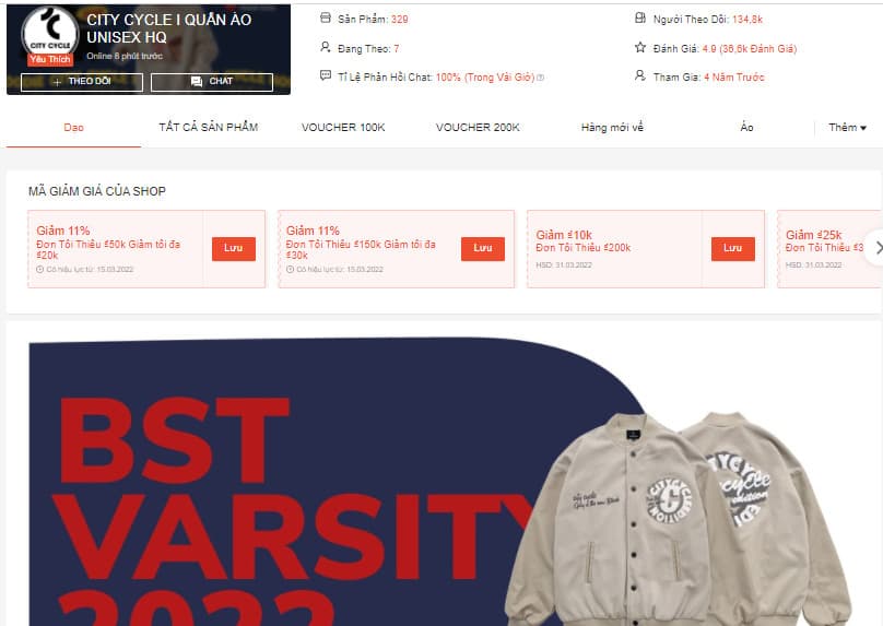 Cái tên cuối cùng trong danh sách local brand unisex bán chạy nhất Shopee không thể không nhắc tới là CITY CYCLE. Sau 4 năm hoạt động tại Shopee, brand này có cho mình 125K lượt theo dõi, 37k đánh giá và hàng chục nghìn lượt mua hàng.