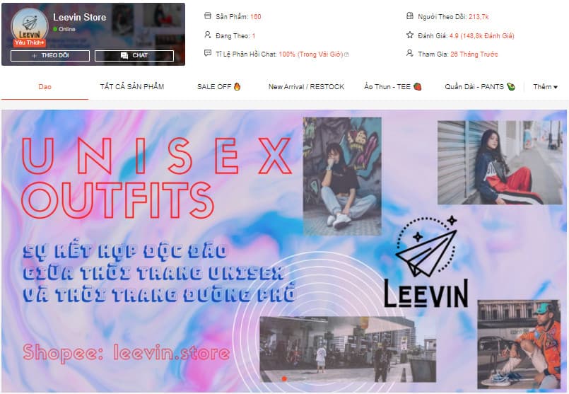 2. Leevin Store – Local brand unisex uy tín được yêu thích nhất trên Shopee