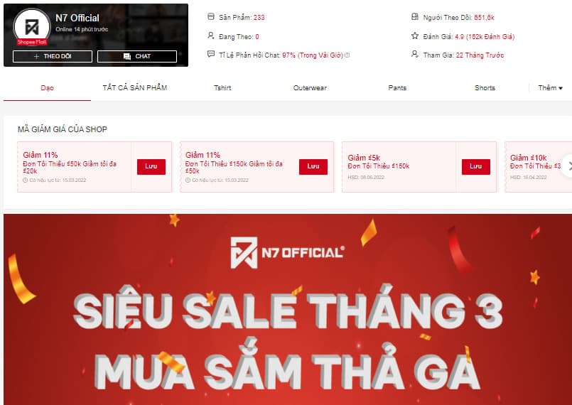 N7 Official là một trong số ít những Local Brand nổi tiếng tại Hà Nội xuất hiện trên Shopee. Với 22 tháng hoạt động, N7 thu về cho mình hơn 650K lượt theo dõi, 162K đánh giá trên 230 sản phẩm khác nhau.
