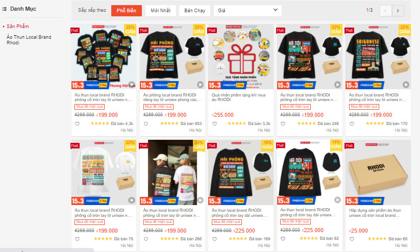 3. Rhodi.official - Local brand unisex được yêu thích nhất trên Shopee