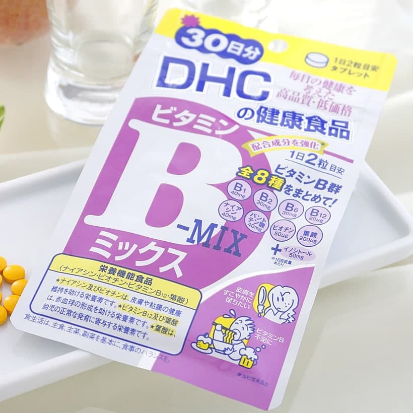Viên uống DHC bổ sung Vitamin B của hãng cũng là một sản phẩm bán cực kì chạy và nổi tiếng. Sau khi uống, cơ thể sẽ được nạp một loạt 8 vitamin nhóm B như B1, B2, B6, B12, niacin, acid pantothenic, biotin, inositol, acid folic... Nhờ vậy, viên uống sẽ đem lại các hiệu quả như cải thiện làn da mỏng yếu, dễ kích ứng. Tăng sức đề kháng da, bảo vệ da trước những tác nhân xấu của môi trường. Hạn chế mụn viêm, mẩn đỏ, kích ứng da. Đặc biệt là giúp tóc chắc khỏe, giảm gãy rụng...