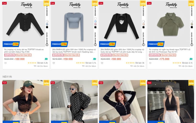 1.4. TOPTIFY Official Store – Shop bán áo Croptop đẹp trên Shopee