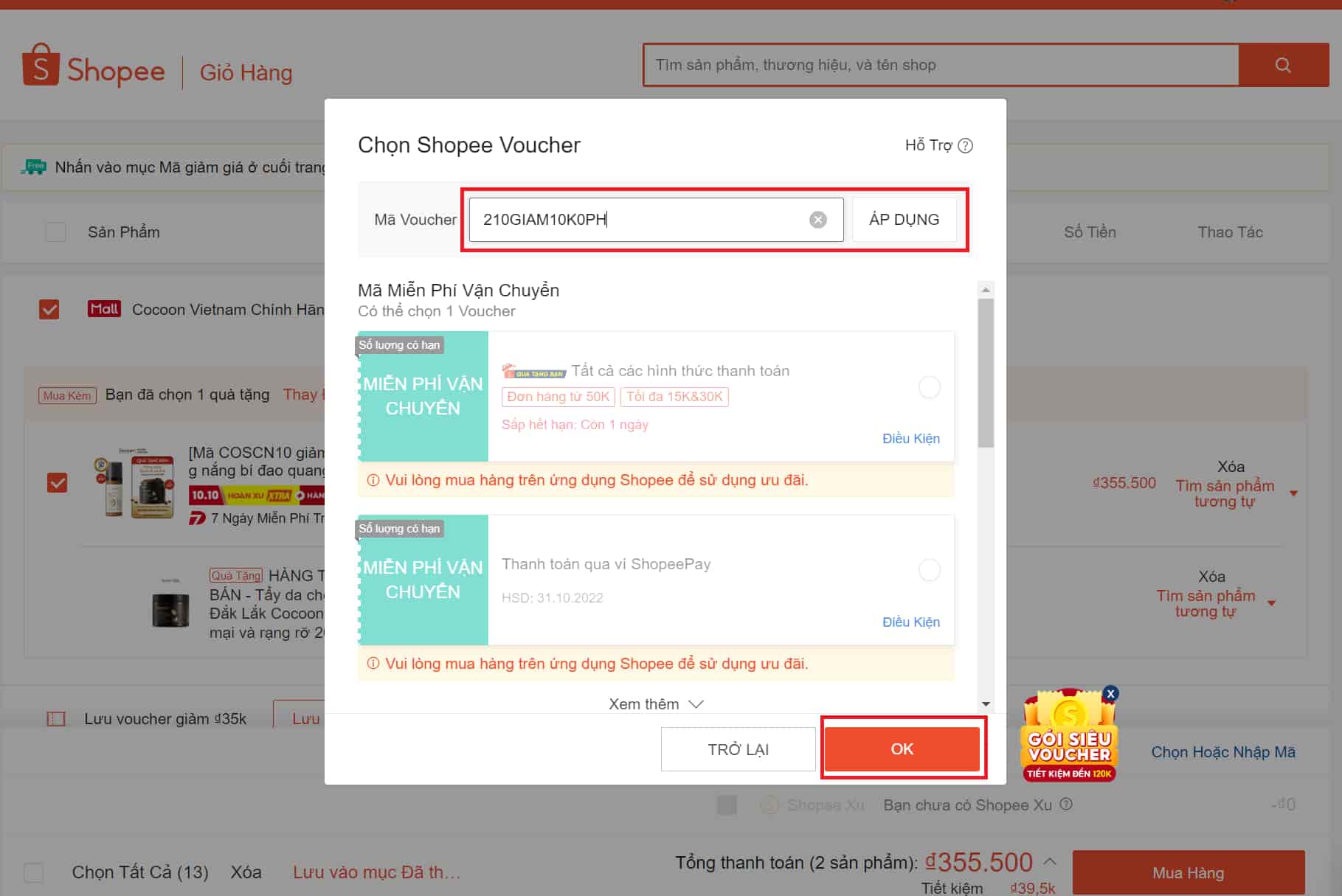- Bước 3: Dán mã và thanh toán đơn hàng trên Shopee là hoàn thành.